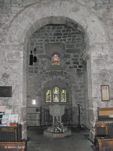 The arch which separates the Baptistry from the rest of the church is a complete Roman gateway erected originally at Corstopitum, just outside Corbridge, about AD 150. |