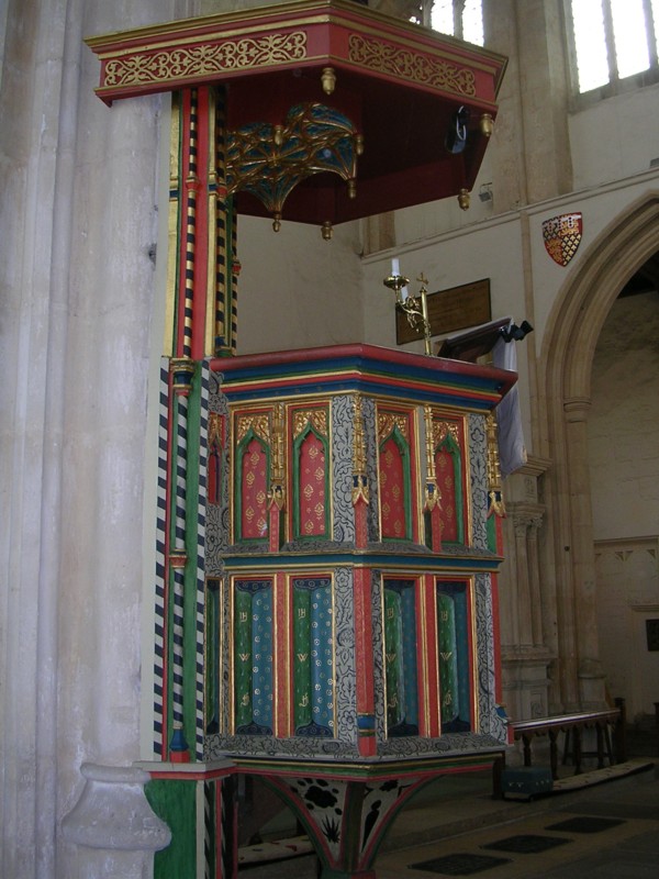 The 15th century pulpit was a gift from Edward IV and has been restored to its original colours.