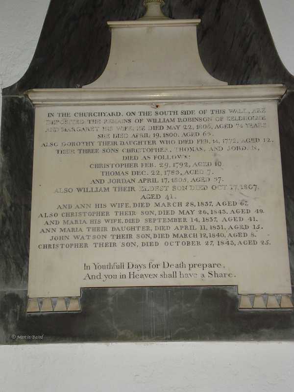remains of William Robinson of Keldholme and Margaret his wife. He