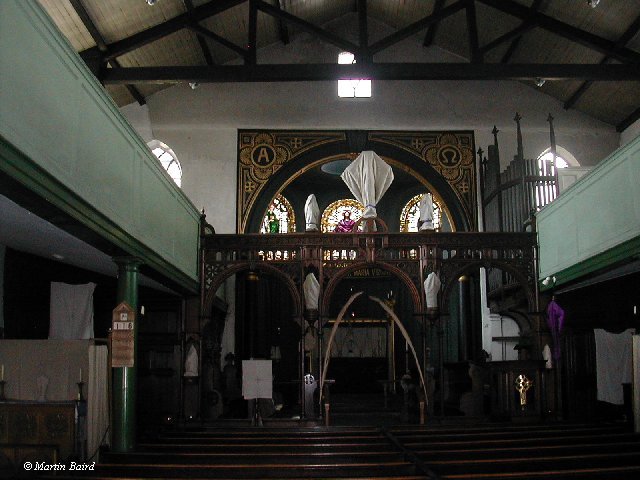 Inside St Ninian's religious artefacts veiled for PashiontideClick on the photo for a larger copy - use your browser back button to return. |