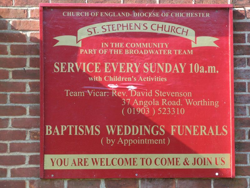 | St. Stephen's Church, Angola Road, Worthing BN14 8DU GPS Location N50°49'20.31" W0°21'35.37" |