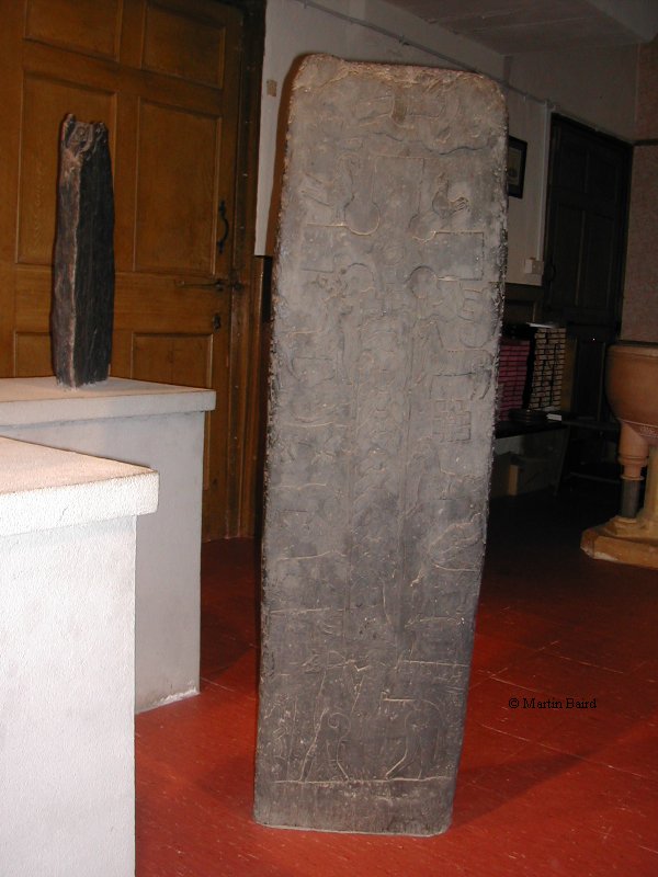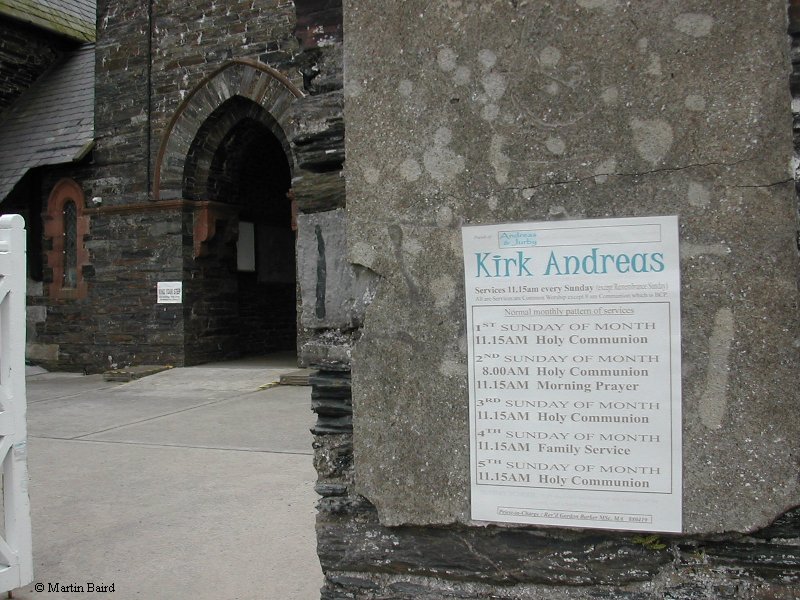 A 10th century cross slab one of 11 crosses dated 7th - 11th century located inside the chuirch Sandulf's Cross apparently is in memory of his wife Arinbjorg.