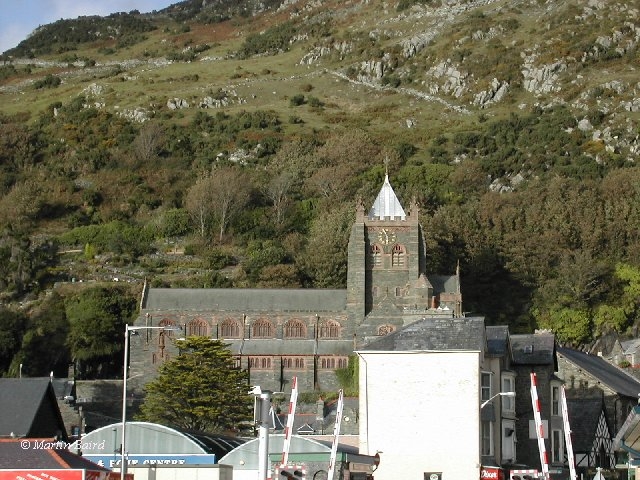 The church appears to have been built on a platform or dias which has been hewn out of the rock of the hillside behind, and towers over the shopping area of the town.